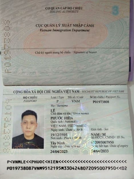 • Số hộ chiếu: P01973808