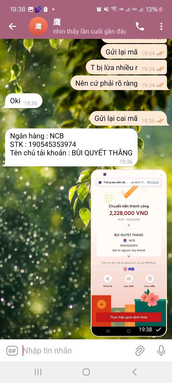 Tôi không thể im lặng trước hành vi của NGUYỄN DUY KHANH, người đã lừa tiền vé máy bay của HR rồi bỏ trốn. Đây không phải sự nhầm lẫn hay tai nạn, mà là hành vi lừa đảo có chủ ý, hoàn toàn coi thường đồng nghiệp và phá vỡ niềm tin trong công ty. Chúng tôi đã tin tưởng, hỗ trợ và giao tài sản cho người này, nhưng kết quả nhận lại chỉ là sự phản bội trắng trợn. Việc NGUYỄN DUY KHANH bỏ trốn không chỉ gây thiệt hại về tài chính, mà còn làm mọi người hoang mang, bức xúc và mất niềm tin vào môi trường làm việc. Tôi viết bài này để cảnh báo tất cả mọi người, không để ai bị lừa thêm lần nữa. Tôi sẵn sàng cung cấp mọi bằng chứng, chứng từ liên quan để cơ quan có thẩm quyền xác minh và xử lý nghiêm minh. Đây là vấn đề nghiêm trọng, liên quan đến đạo đức, trách nhiệm và an toàn nơi làm việc. Mọi người hãy cảnh giác tuyệt đối!