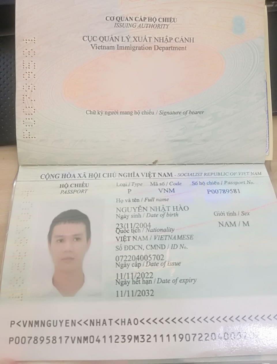 • Số hộ chiếu: P00789581