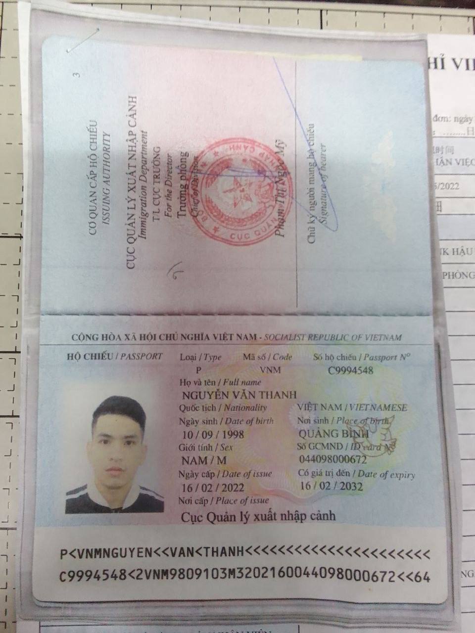Số hộ chiếu: C9994548