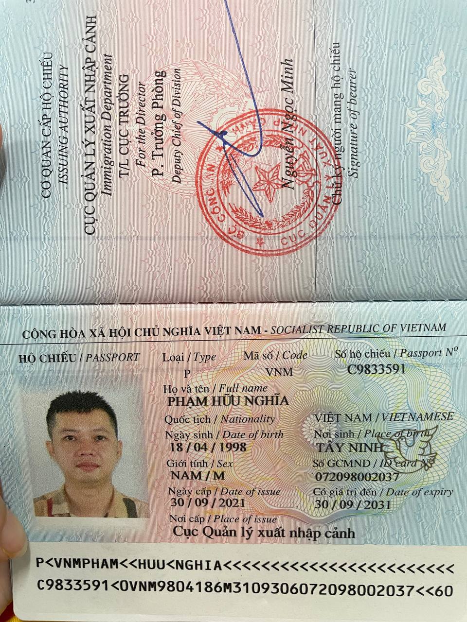 Số hộ chiếu: C9833591